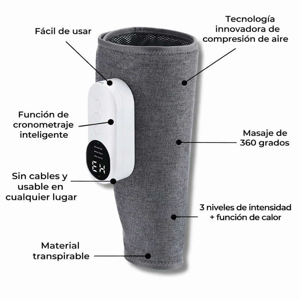 El diseño de 360 ​​grados y la función de calor, podrá sentir claramente cómo se alivia el dolor, se reduce la hinchazón y se mejora la circulación en las piernas. Disfrute de la máxima comodidad y bienestar.
