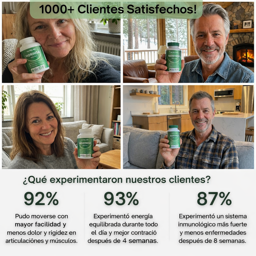 Dado que la moringa es un alimento integral que el cuerpo reconoce, sus nutrientes se absorben y utilizan de forma más natural que los antioxidantes altamente aislados. El resultado es un apoyo más amplio y a largo plazo para las funciones diarias del cuerpo , en lugar de un efecto temporal.
