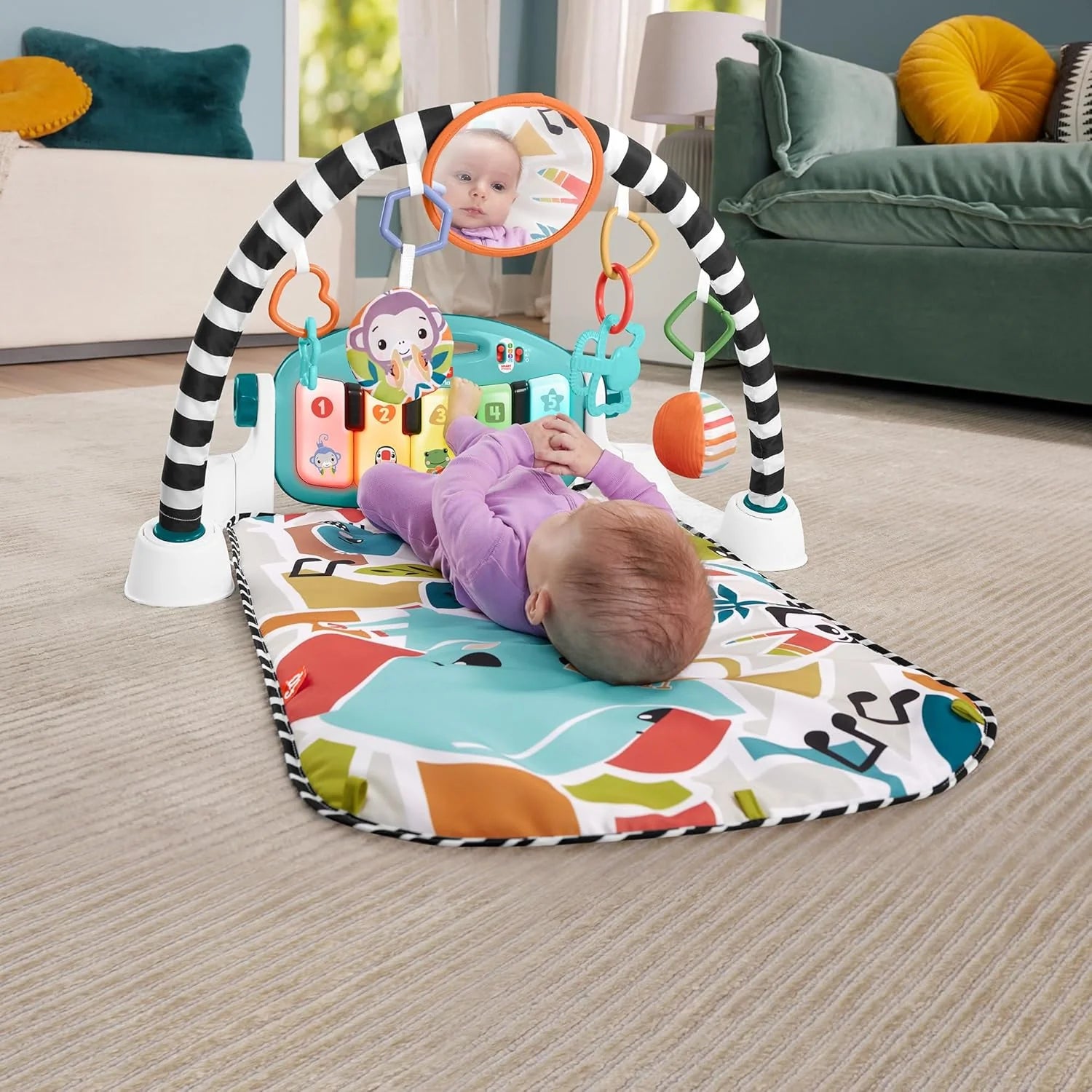 Superficie acolchada cómoda para jugar boca arriba o boca abajo.