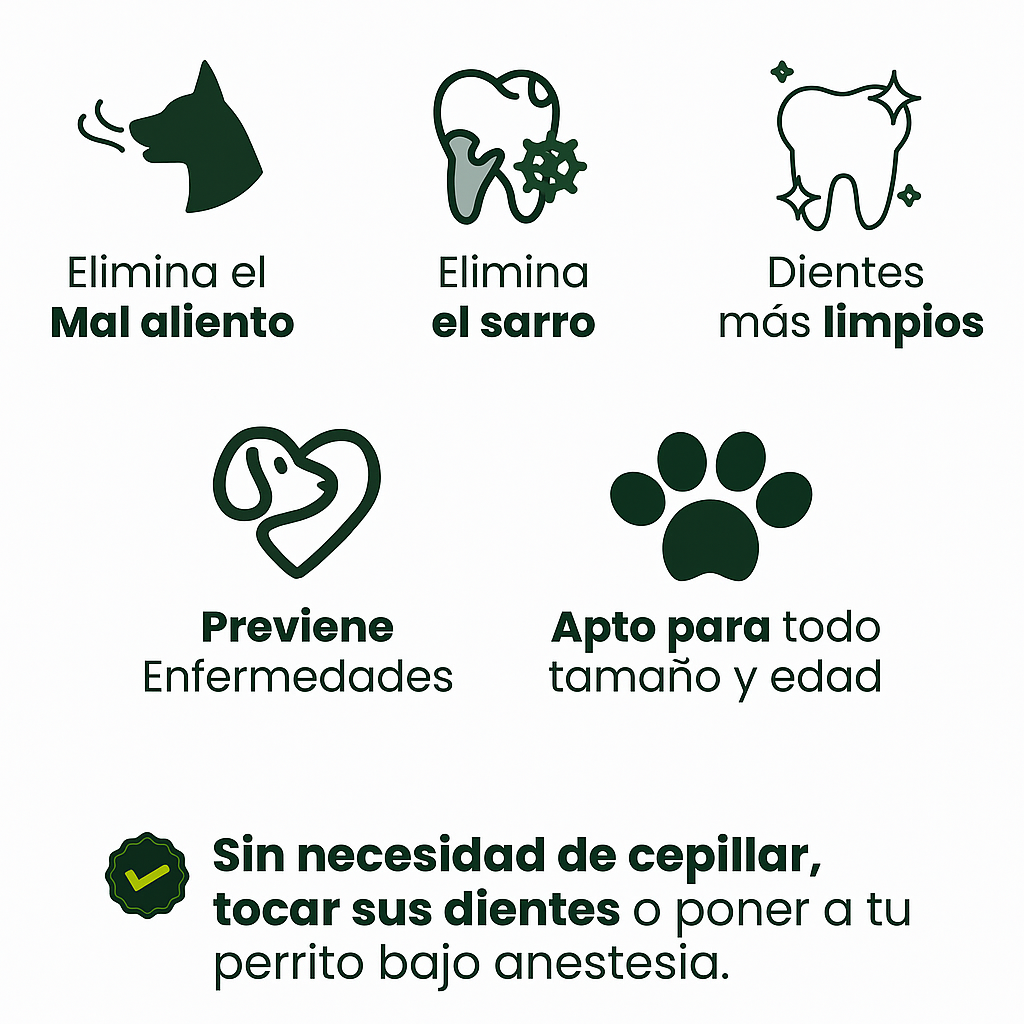 El spray suaviza suavemente la placa existente, previene eficazmente la formación de nueva placa y sarro, sin necesidad de frotar mecánicamente ni causar estrés al perro.