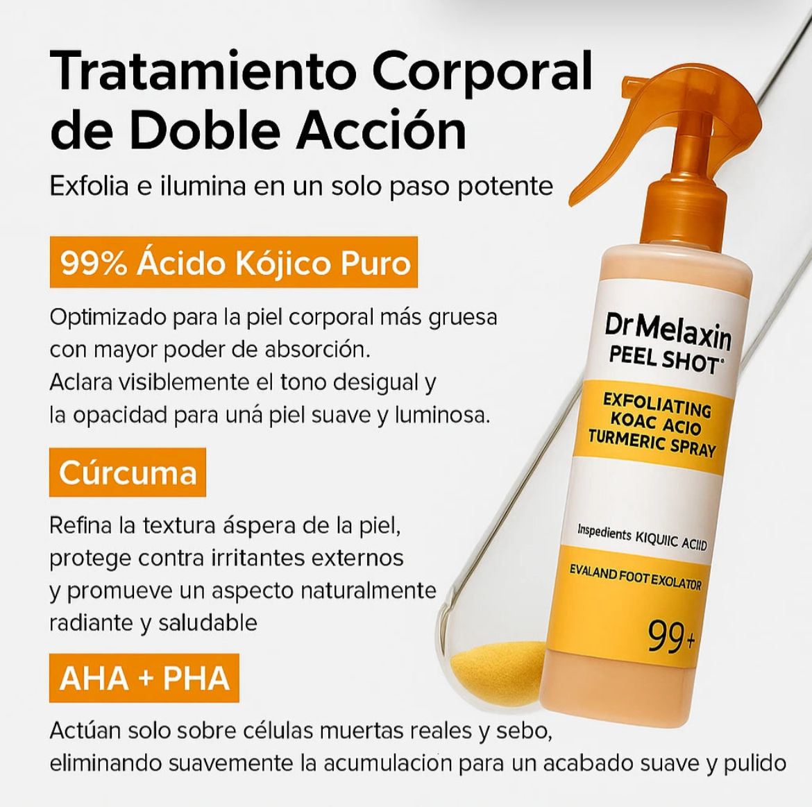 Aclara manchas oscuras y tono desigual con ácido kójico.